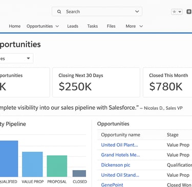 With Einstein AI, reps get recommendations on the next best action, cross-sell/upsell opportunities, and deal health scores—helping them close more deals faster.