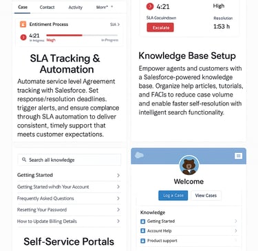 Offer 24/7 support with branded Salesforce self-service portals. Let customers track cases, access knowledge articles, and engage with community forums—improving satisfaction while reducing service team workload.